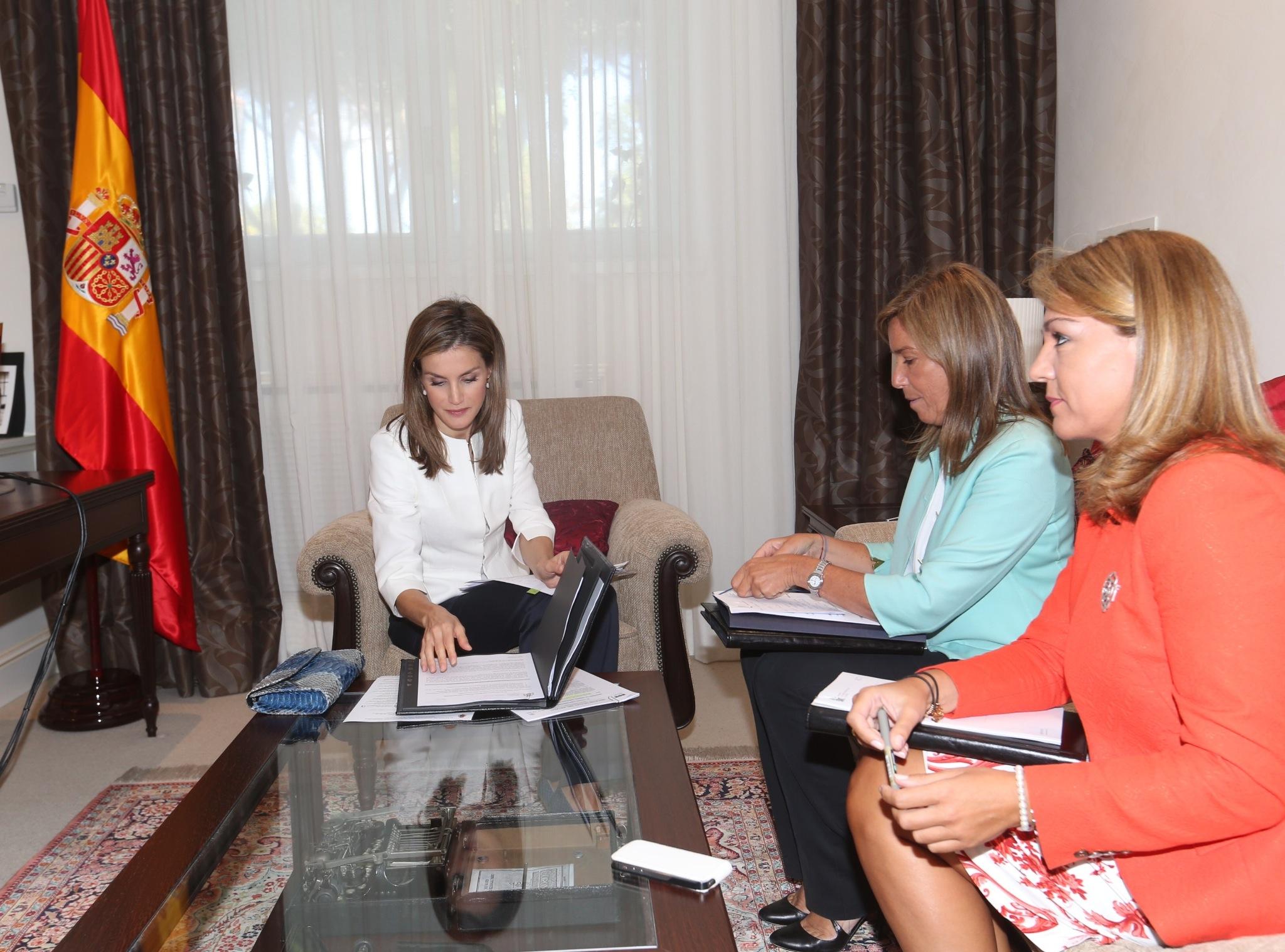 Queen Letizia had a busy day at the Palace of Zarzuela, where she received several audiences. Her first audience was with representatives of the Federation of Spanish diabetics (FEDE). Her majesty then received in audience representatives of the Alia2 Foundation who work to protect the rights of minors on the Internet, by promoting a safe and responsible use of the web The Queen later received in audience the current badminton world champion Carolina Marín. She recently defeated reining Olympic champion Li Xuerui in a match considered to be one of the most memorable in the history of Spanish sport and badminton. Letizia repeated an outfit, seen twice before. She first debuted this look in May this year and then again in June at the Environment Awards. The outfit consists of a Hugo Boss shirt and skirt. The crisp white shirt is a classic style from the Boss collection named 'Bashina' (US$195) The 'Merela' navy and white pleated skirt is from the Spring 2014 range (sold out). Other familiar pieces included her Magrit 'Leonor' beige suede pumps (€220) and TOUS pink opal 'Dinah' earrings (US$540). SHOP QUEEN LETIZIA'S STYLE FOR LESS ... The Queen of Spain spent the day in meetings with representatives from various health ministries. Doña Letizia first received in audience at Zarzuela Palace the Minister of Health, Social Services and Equality , Ana Mato and Secretary of State for Social Services and Equality, Susana Camarero. Her Majesty then presided over the meeting of the Council of the Royal Board on Disability. Queen Letizia kept her outfit professional wearing a recycled ensemble. She wore her white Hugo Boss 'Jeisana' blazer which features a peplum hem, round neck and hook-and-eye closure. It has cropped sleeves with vented cuffs. This particular style has sold out, but there is a new season version currently on sale at Saks Fifth Ave. Her Majesty paired the jacket with navy trousers and coordinated the outfit with navy pumps and her Madmacarena Blue Fantasy 'Jessica' clutch which made its debut in June at Letizia's first engagement as Queen. Doña Letizia completed the look with her TOUS 'Dinah' earrings which date back to January 2012. The 18kt yellow gold earrings feature pink opals that dangle from a hook lock. The retail for US$540. SHOP QUEEN LETIZIA'S STYLE FOR LESS ... Today, Don Felipe VI and Doña Letizia received their first international dignitaries as King and Queen. Their Majesties welcomed President of Panama, Juan Carlos Varela and his wife Lorena Castillo de Varela at the Royal Palace in Madrid. Queen Letizia wore a Felipe Varela white sheath dress embroidered with seed pearl flowers. She first wore this dress in September 2013 when the Spanish royal family welcomed the King & Queen of The Netherlands at Zarzuela Palace. On this occasion, Letizia adorned it with a silver belt. For today's lunch at the palace, Queen Letizia simplified the outfit by excluding the belt. She wore her white gold bezel set diamonds and Australian pearl dangle earrings Letizia kept her accessories neutral, wearing her blush patent slingback heels and envelope clutch, both pieces from Magrit. SHOP QUEEN LETIZIA'S STYLE FOR LESS ... The Queen of Spain resumed her royal duties today following a month long summer vacation at the royal residence in Palma, Majorca. Their Majesties visited the Museo Picasso Málaga, a museum in the city of Málaga, where artist Pablo Ruiz Picasso was born. Prior to entering the museum, the King and Queen did a walkabout and even poised for selfies. The royal couple gradually made their way into the museum where they viewed 43 new additions by the artist, which complement the 233 already on display in the museum. After touring the museum, Their Majesties were guests of honour at the XIXth Spain-United States annual dinner, attended by select business leaders from the public and private sectors of the two countries. For the occasion, Queen Letizia repeated a black satin Felipe Varela sheath dress, which she debuted last November while on tour in the USA. The dress features a classic tank silhouette with an embroidered mesh back panel. She accessorized the dress with a black satin clutch bag and platform heels which are reported to be by Hugo Boss. These shoes are the same ones she wore last week to a concert in Palma de Mallorca . Letizia's outfit was complemented by a soft, sweeping up-do, understated make-up and her dazzling "wedding" earrings. SHOP QUEEN LETIZIA'S STYLE FOR LESS ... |